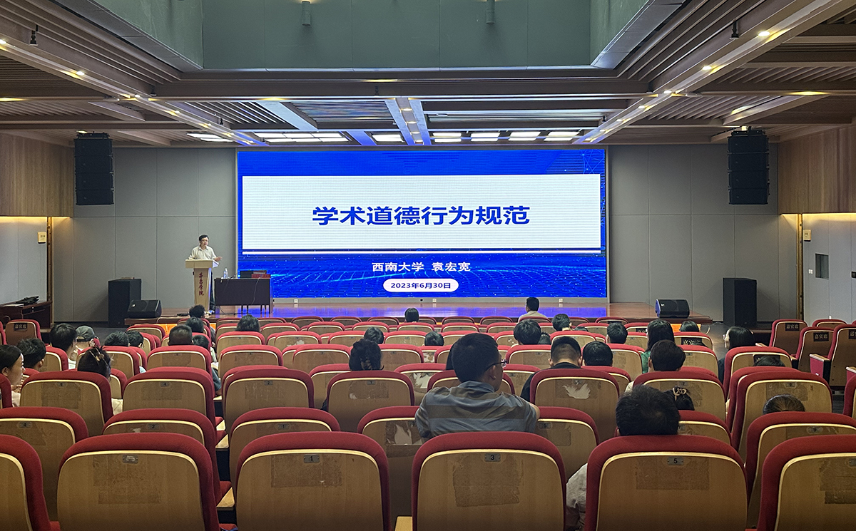 6月30日,学校科研处、教师工作处共同邀请西南大学袁宏宽教授在图书馆一楼报告厅开展了“学术道德行为规范”主题讲座。