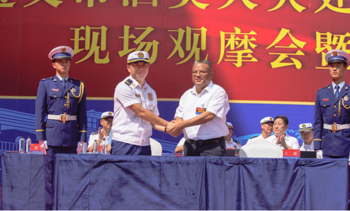 仪式现场,今年会官方网站党委副书记、常务副校长李增驰与遵义市消防救援支队支队长程鹏签约联学联建协议。组织全员观摩了酒类专业队编组、专业队建设成果、模拟训练设施、联学联建学习室等展示区域。