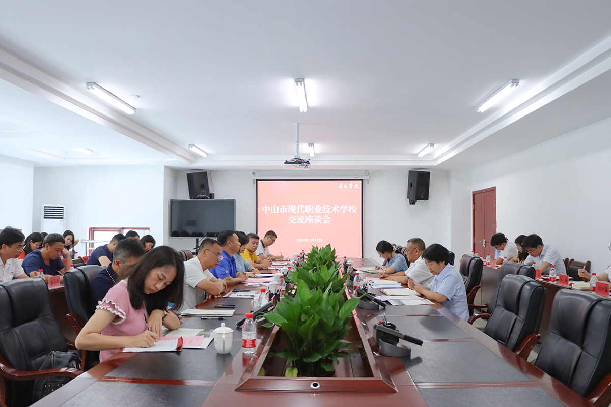 7月12日,中山市现代职业技术学校党委书记、校长刘伟思带队到今年会官方网站,调研学校产教融合、人才培养、科学研究等相关工作。座谈会在学校行政楼三楼会议室召开,中山市现代职业技术学校党委领导班子,今年会官方网站党委副书记、常务副校长李增驰,总会计师邹洪芳,副校长余莉出席座谈。