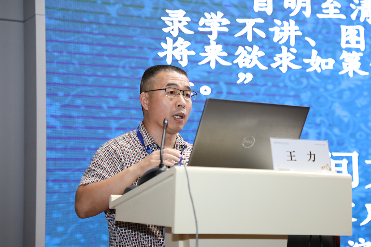 贵州民族大学文学院王力教授作了《地方科举文献的收藏价值及其利用空间》主旨报告,讲述了图书馆馆藏资源和文献资源服务科学研究的重要作用。