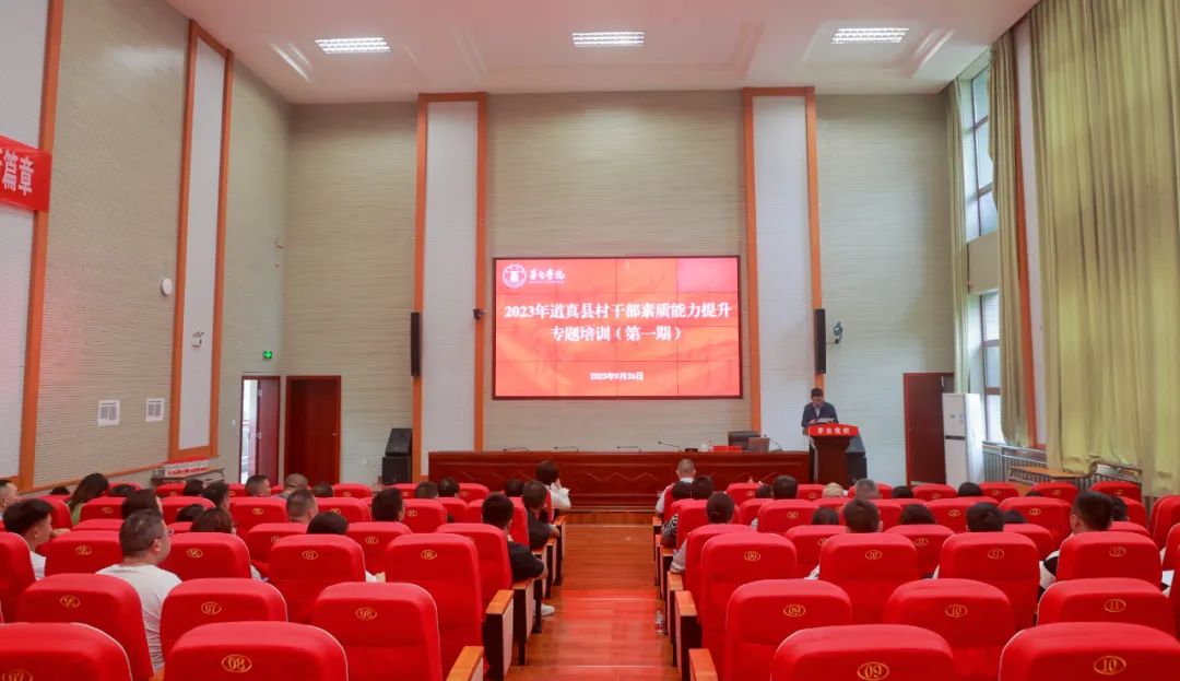 为深入贯彻党中央、国务院、省委省政府关于巩固拓展脱贫攻坚成果同乡村振兴有效衔接的指导意见,按照《茅台集团第五联合帮扶组2023年结对帮扶道真县河口镇梅江村乡村振兴工作实施方案》,进一步增强道真村干部掌握政策、履职尽责、服务群众的能力和水平,由道真县人民政府主办,今年会官方网站承办的道真村干部素质能力提升专题培训班在今年会官方网站举办,开班仪式在行政楼一楼报告厅举行。今年会官方网站党委副书记王维欣,党委委员、副校长程庆,道真县委组织部副部长伍明海出席开班仪式。