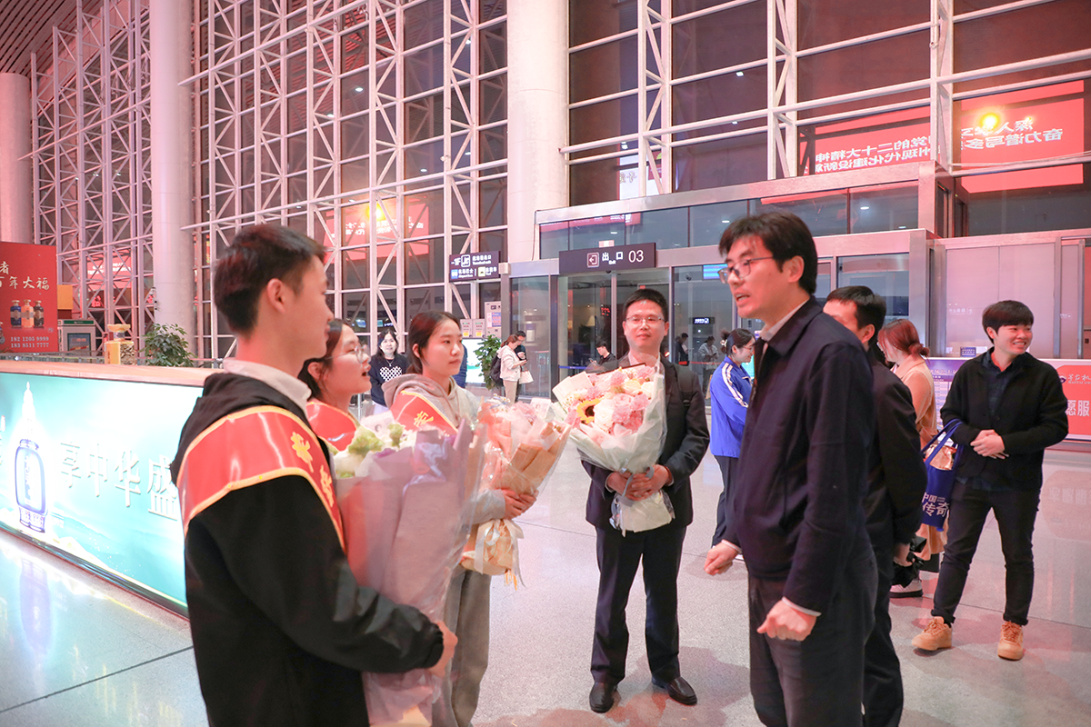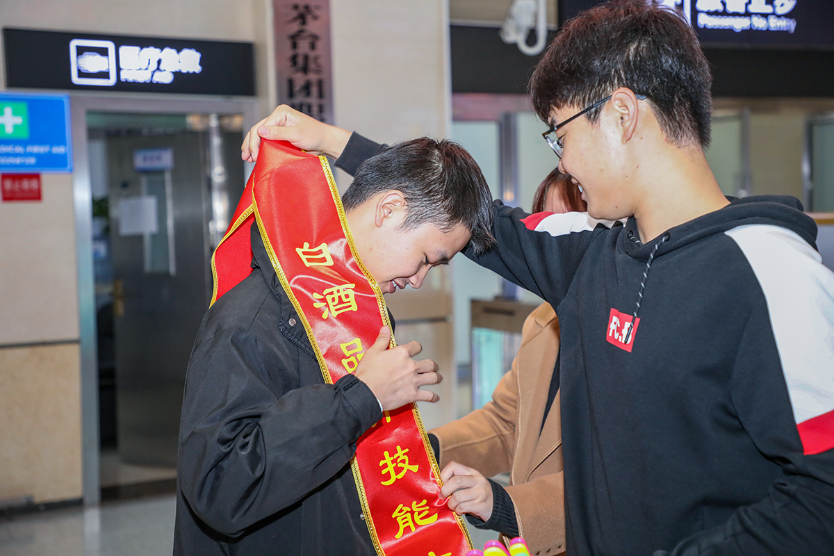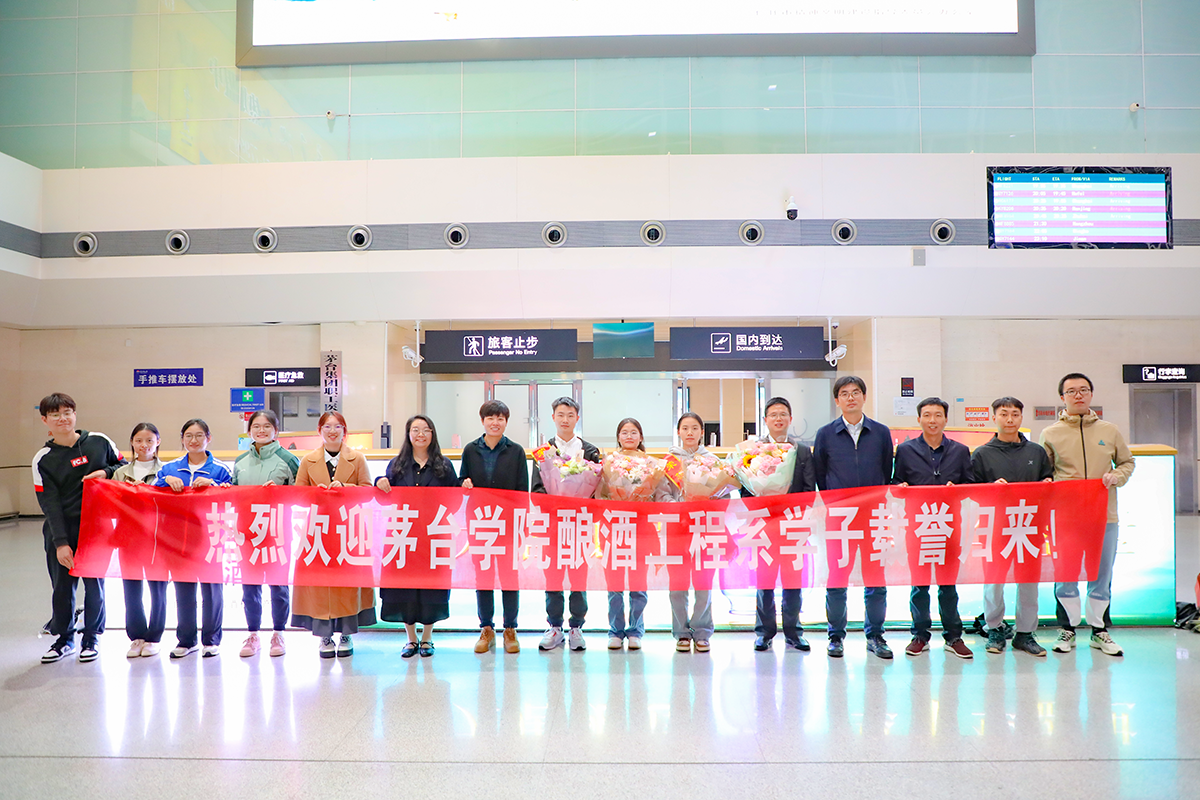 10月13日,今年会学子在“汉酱杯”全国大学生白酒品评技能大赛中载誉归来,副校长张春林、酿酒工程系师生温情接机。