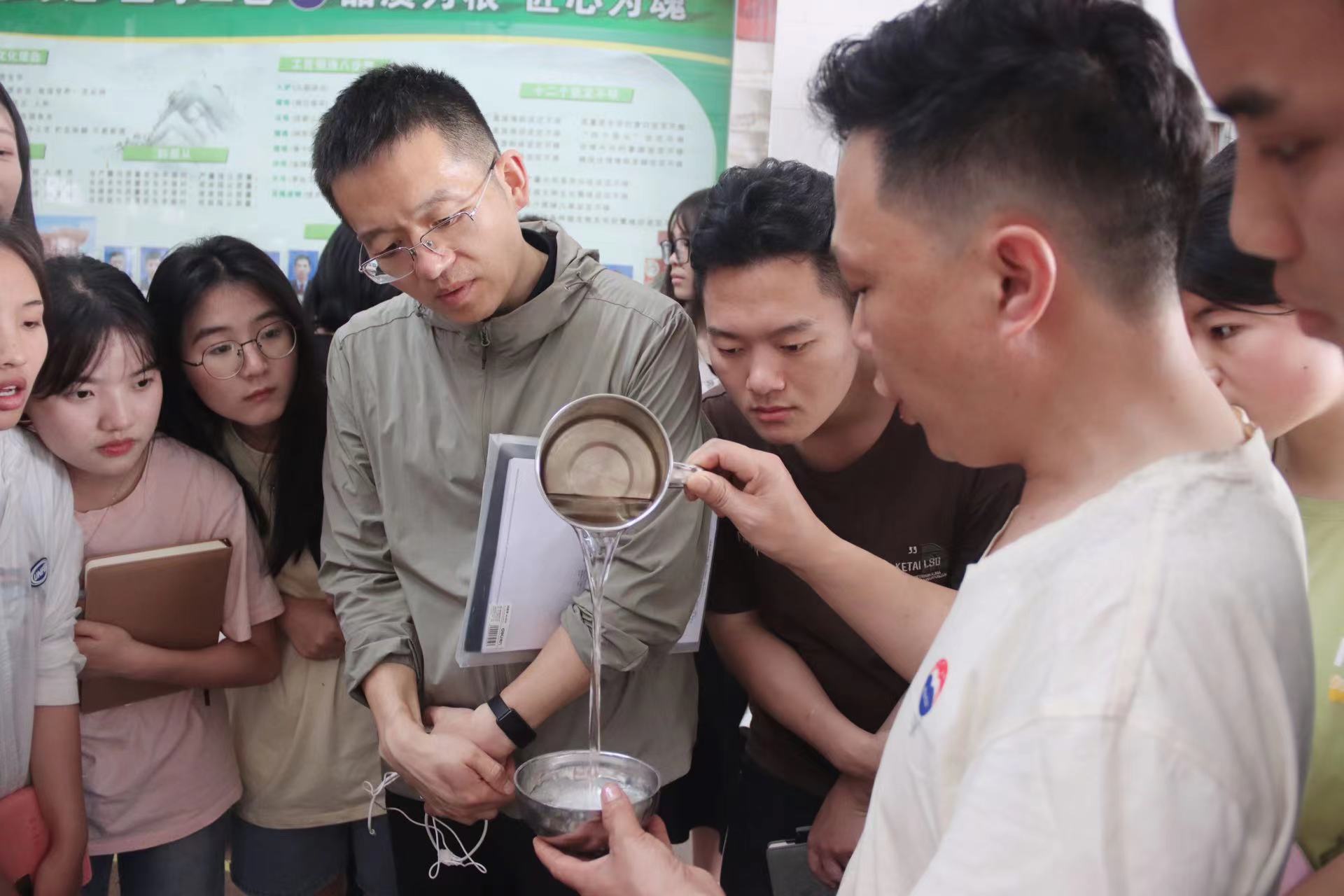 实习指导老师为同学们介绍制酒工艺