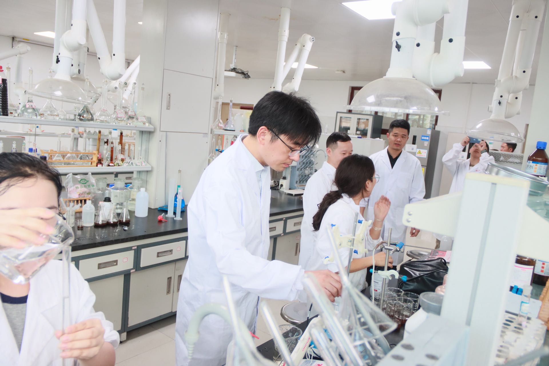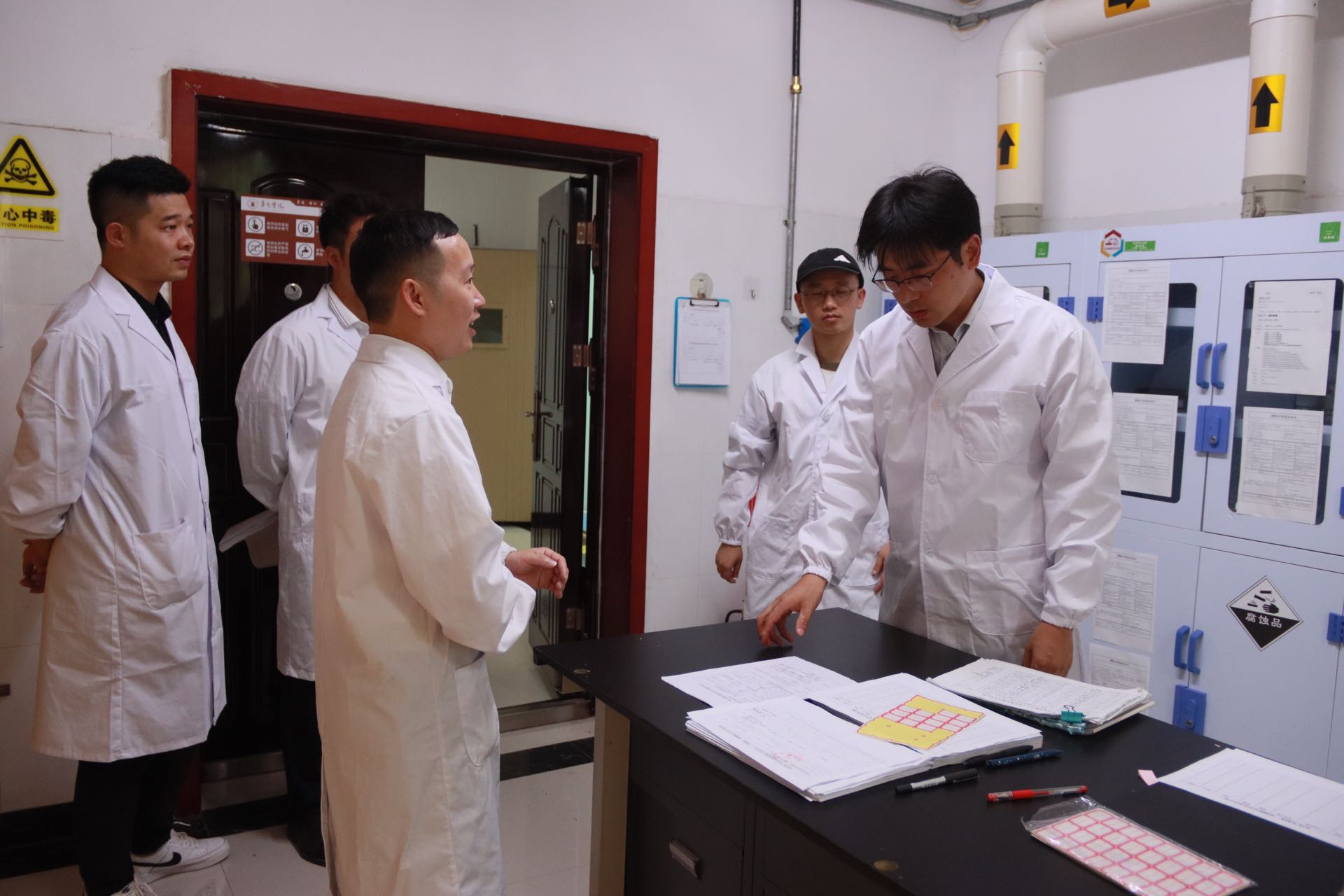 此次检查重点查看了两个一级风险等级实验室和重点区域的运行情况,张春林对气瓶的储存措施、危化品的管理规范等方面提出了相应要求,并对实验室管理人员强调了实验室运行要坚守安全底线,严格把控隐患风险点。
