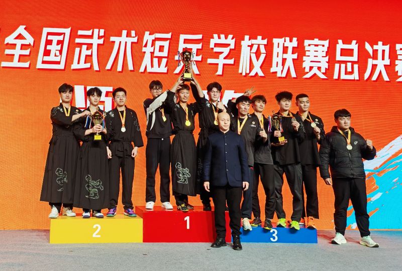 全国武术短兵锦标赛汇聚了各省、市体育局、香港兵道总会、北京体育大学、成都体院、南京体院等30余支代表队的武术短兵高手,今年会5名队员参加,最终学生蔡星鑫获得男子短兵技铜牌、韩雨洁获得女子短兵技第五名、石艳获得女子个人竞技52KG级第五名。