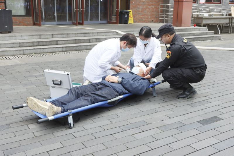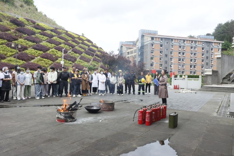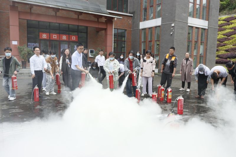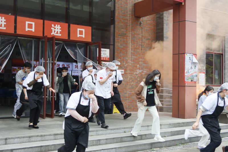 随着消防警报响起,工作人员迅速启动应急预案,师生们按预定路线快速疏散,相关人员迅速进行火情扑救和人员救治。随后,消防技术人员示范灭火器、灭火毯使用方法,部分师生与食堂员工实操演练,有效提升了安全意识和消防技能。