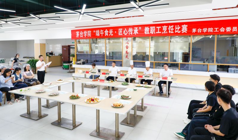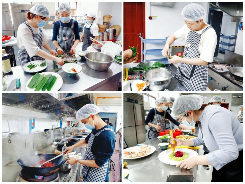 下午时分,烹饪大赛在教职工食堂正式拉开帷幕,来自机关、各二级学院共16个工会小组,近30名早已撸袖擦掌的教职工,迅速进入竞技状态。他们需在规定时间内完成融入端午文化元素的预定菜品。比赛现场,老师们化身“厨神”,有条不紊的一阵忙碌后,各式菜肴香味在空气中飘散开来,引得师生们纷纷闻香而至,驻足围观。