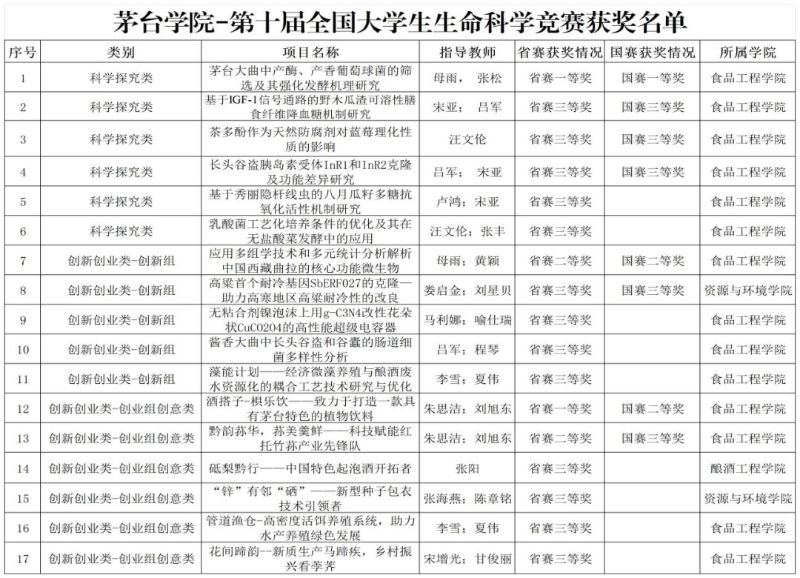 近日,第十届全国大学生生命科学竞赛决赛圆满落幕。今年会学子斩获国家级奖项8项、省级奖项17项,获奖数量与质量均创历史新高!其中,食品工程学院项目《茅台大曲中产酶、产香葡萄球菌的筛选及其强化发酵机理研究》获国赛一等奖,实现今年会在该赛事中国家级一等奖“零突破”!
