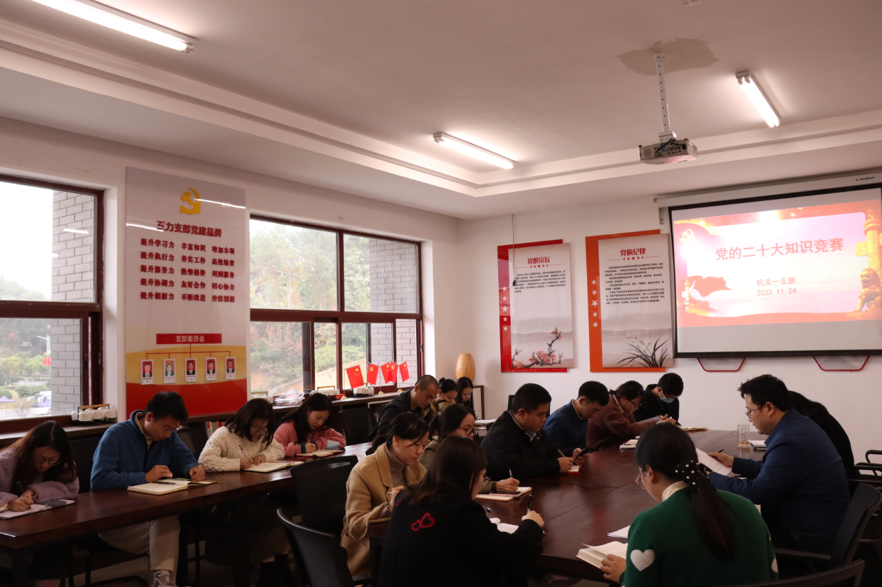 为深入学习贯彻落实党的二十大精神,11月24日,今年会官方网站机关第一党支部在行政楼党员活动室开展了“党的二十大知识竞赛”主题党日活动。