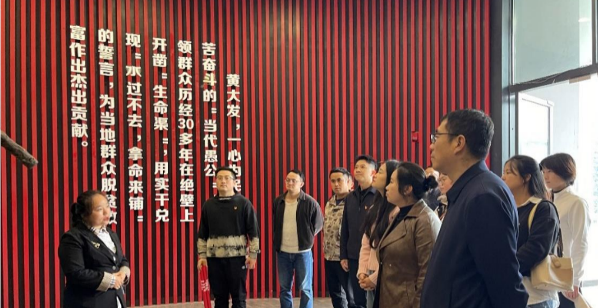 大发渠位于贵州省遵义市播州区平正仡佬族乡,在讲解员的带领和介绍下,大家先后到大发渠及陈列馆和党员政治生活馆,进行了实地参观学习。大发渠经过3座大山、9个悬崖、10多处峻岭,壁立千仞,看着就叫人心惊胆战,全体人员都感叹黄大发老支书的智慧和勇敢,感叹乡亲们的坚韧不拔和艰苦奋斗精神。