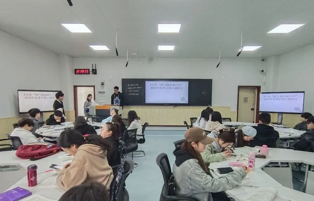 主题班会上,辅导员、班主任老师们围绕“爱国、团结、奋斗、科学、互助”五个关键词,通过理论宣讲、朋辈对话,观看视频等方式,引导学生自觉把个人理想和国家梦想、个人价值与国家发展结合起来,坚定为实现中华民族伟大复兴的中国梦不懈奋斗的理想信念,用实际行动践行党的二十大精神。同时以学风建设、心理疏导为主线,以安全教育为重点,帮助学生们缓解开学焦虑,增强调控自我情绪的能力。