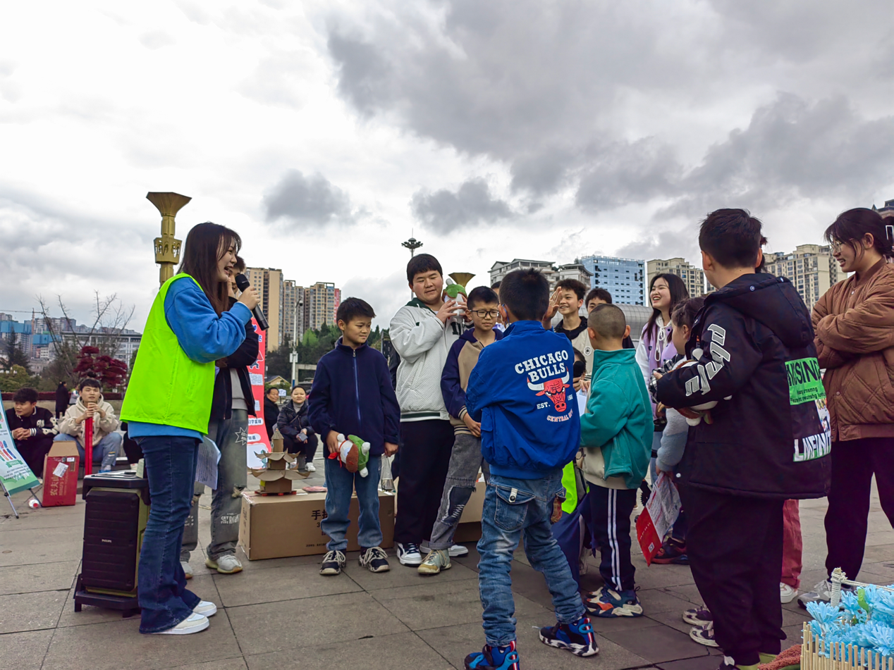 胡艺轩同学从“弘扬雷锋精神,践行环保理念”进行了主题宣讲,意在让小朋友们学习雷锋精神、增强环保意识,并采用有奖问答方式与现场的观众积极互动,现场的小朋友们积极踊跃的参与其中,纷纷表示会在今后的学习生活中不断践行环保理念。抢答结束后工作人员为在场的观众分发了书本或小玩偶等纪念物。