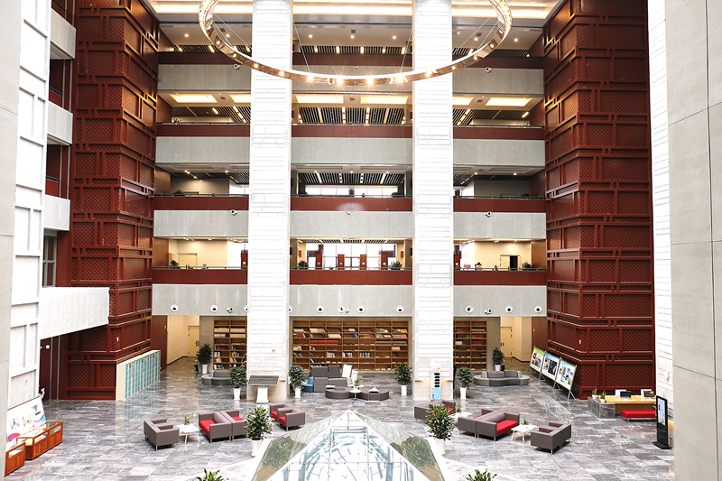 The information and librarian center integrates two apparatus, the information center and school library. Four-hundred thousand books are arranged according to Chinese library classification, and has been taken under digitalized management. There are one million copies of e-books, and a appointed viewing area. The main network frame shares data base with multiple services, like CNKI, Guizhou digital library, to fulfill the needs for distanced documents transmission.