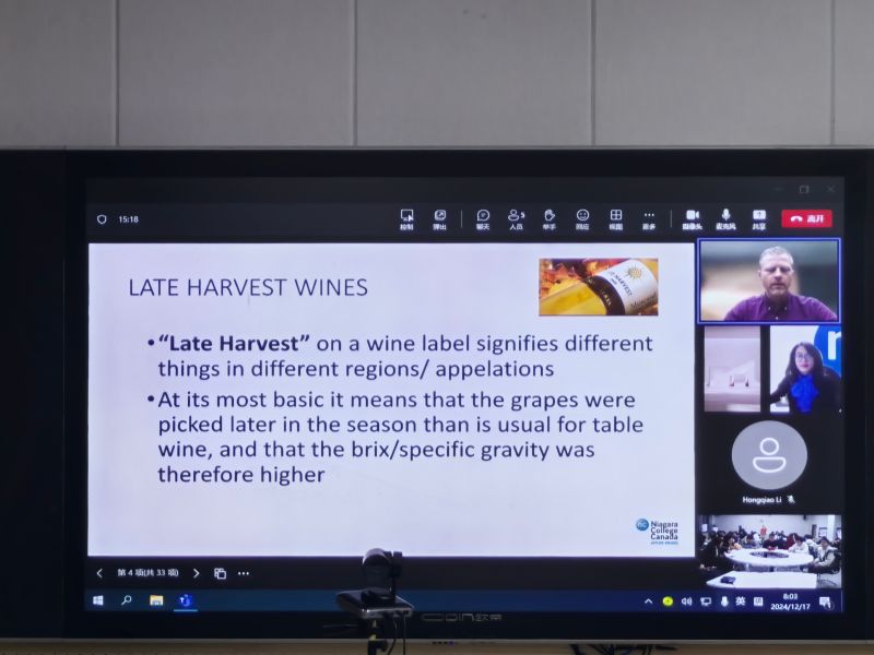 12月17日,应学校邀请,加拿大尼亚加拉学院食品与酿酒学院教授加文·罗伯特森(Gavin Robertson)为学校师生举行了主题为“冰酒酿造及其在尼亚加拉地区的重要性”的线上讲座。