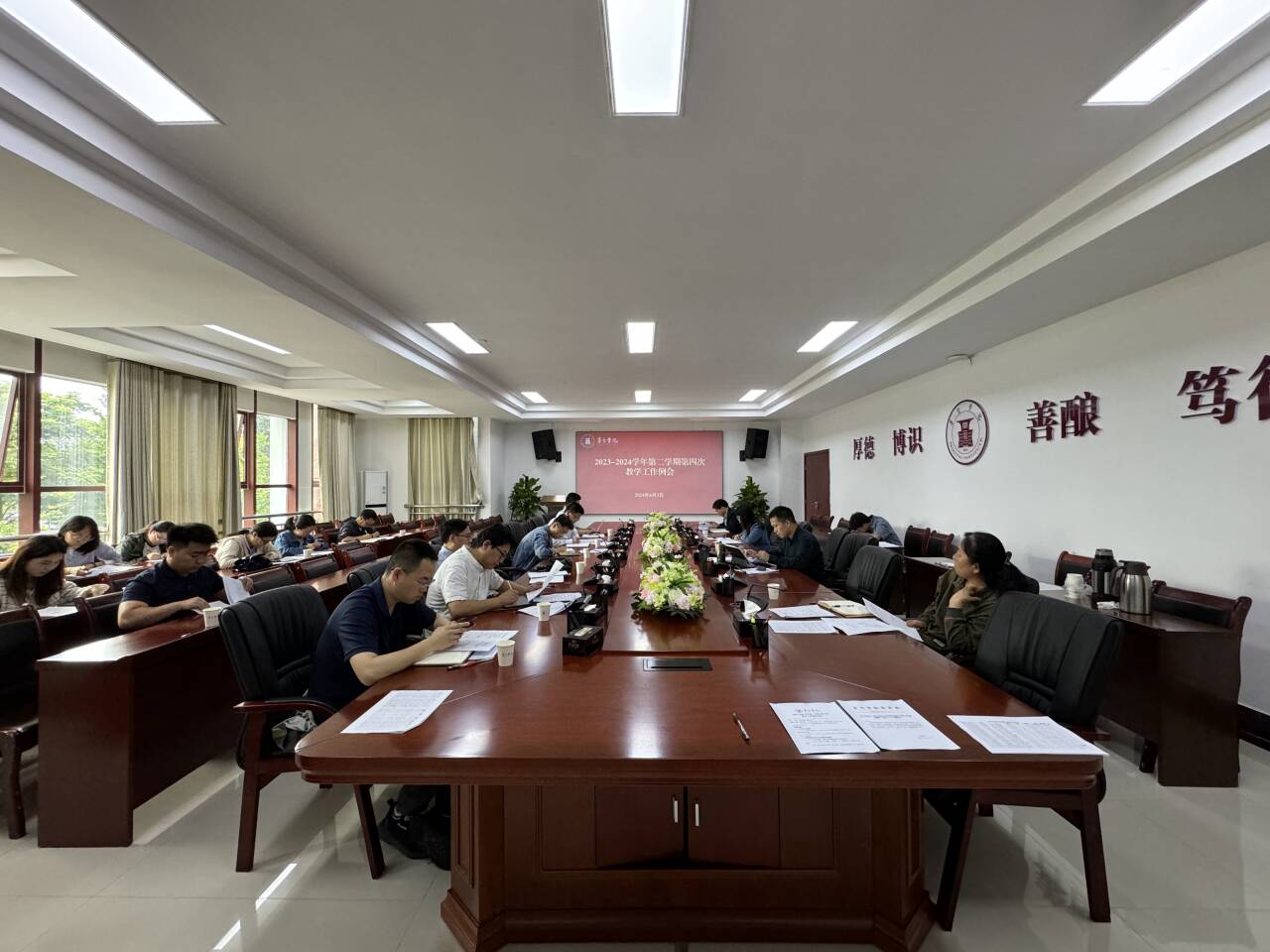 会上教务处处长张丰组织学习习近平总书记对学校思政课建设作出重要指示精神,并通报2024年教学经费执行情况。教务处副处长王贤晨组织学习《今年会官方网站本科教学课时计算与实施细则(试行)》制度,并通报及部署期末考试、英语四六级考试、毕业设计(论文)管理、产业导师聘用、实习实践课程管理等教学运行及实践教学相关工作。教务处副处长杨昌容通报及部署校级一流专业建设、校级“金课”(一流课程)申报、课程教学范式改革项目管理、教研室工作考核、人才培养方案审议等教学建设相关工作。实验实训教学中心主任冯玉龙就化学平台管理工作、试剂耗材采购工作、实验室建设规划工作、实验室主任考核等相关工作进行通报部署。质量监测与评估中心主任彭明勇就学士学位授权专业评估、校内课程评估相关工作进行通报。质量监测与评估中心副主任何惠就督导相关工作进行通报。