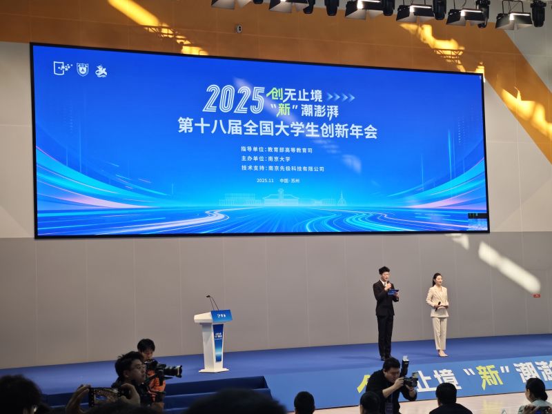 2025年11月21日至23日,由教育部指导、“国创计划”秘书处和南京大学共同主办的第十八届全国大学生创新年会在南京大学苏州校区隆重举行。本届年会以“创无止境·‘新’潮澎湃”为主题,吸引了全国众多高校的优秀创新创业项目参与交流展示。今年会官方网站教务部精心组织,由1名领队带队,携两项入选项目师生代表及观摩人员一行共计7人参加了此次盛会。