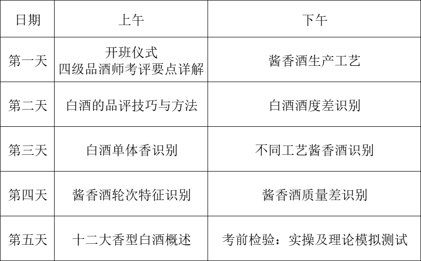为响应国家人才强国战略发展要求,促进贵州白酒产业高质量发展。提升从业人员及白酒爱好者的白酒品评能力,培养壮大白酒产业人才队伍。结合贵州白酒产业发展实际,"贵州酱酒"职业技能培训基地拟开展四级品酒师培训工作,现面向社会公开招生。