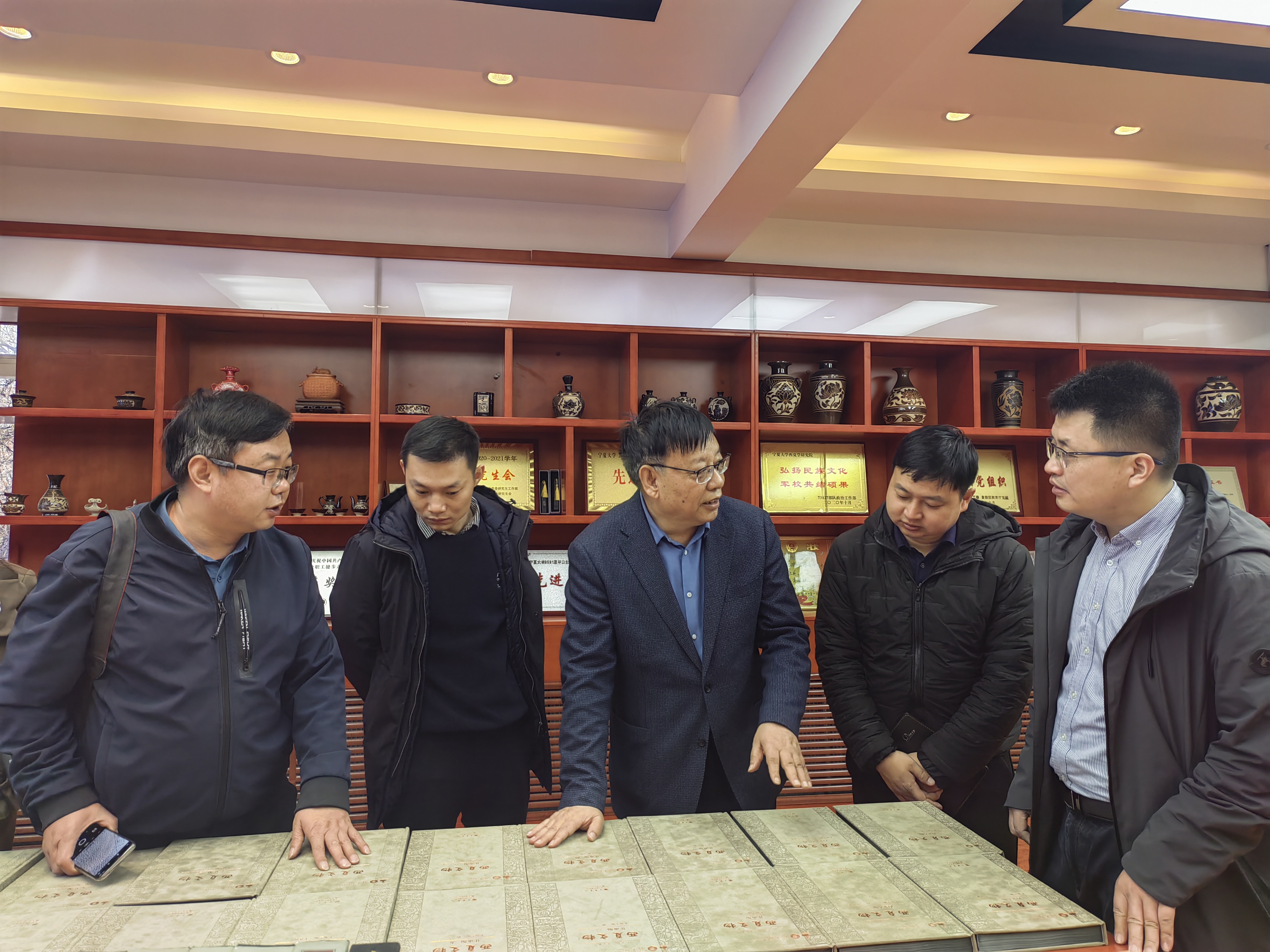 杜建录院长带领参观了特色数据库中的文献馆藏,经过30年的积淀,通过加强与俄罗斯等国家的民族文化交流,终于使得文献数据库有了一定的规模。