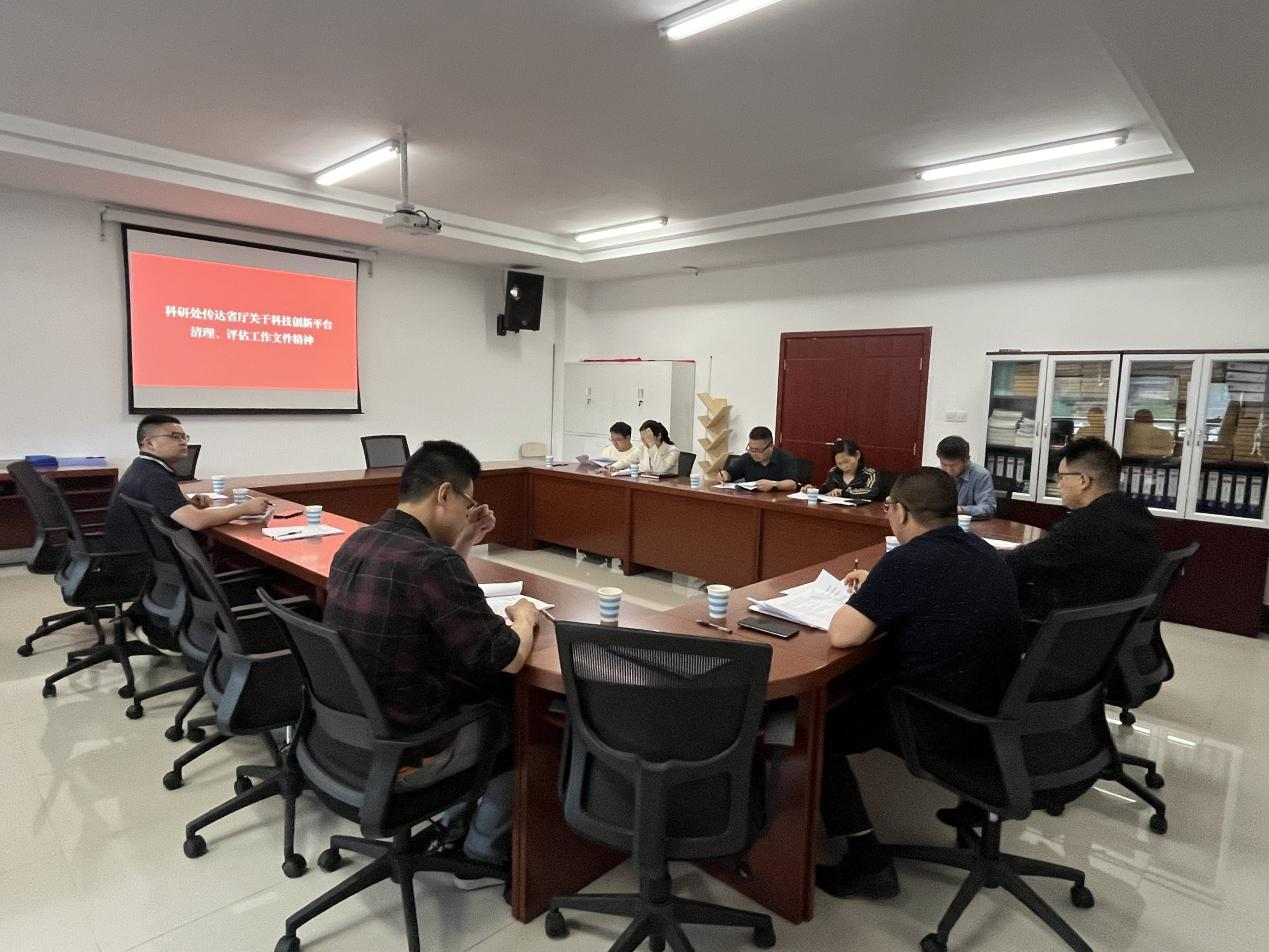 会上,科研处负责人传达学习省教育厅关于科技创新平台清理工作文件精神及对学校此次迎接评估的科研平台做工作动员。