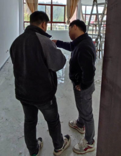 3月3日,审计处肖遥和何志恒前往A2教学楼查看办公室装修改造项目实施进度,后勤管理处覃昱文老师一同参与。
